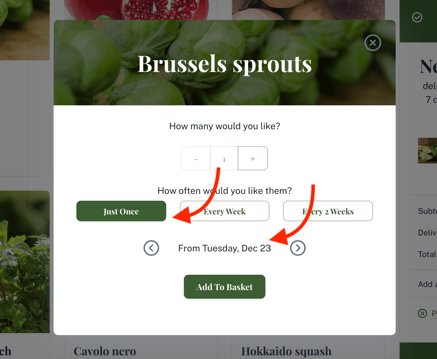 From 15th December - 22nd December, you will still be able to add things to your basket, but the range will be limited, and will consist mostly of roots (potatoes/carrots/parsnips/onions etc).